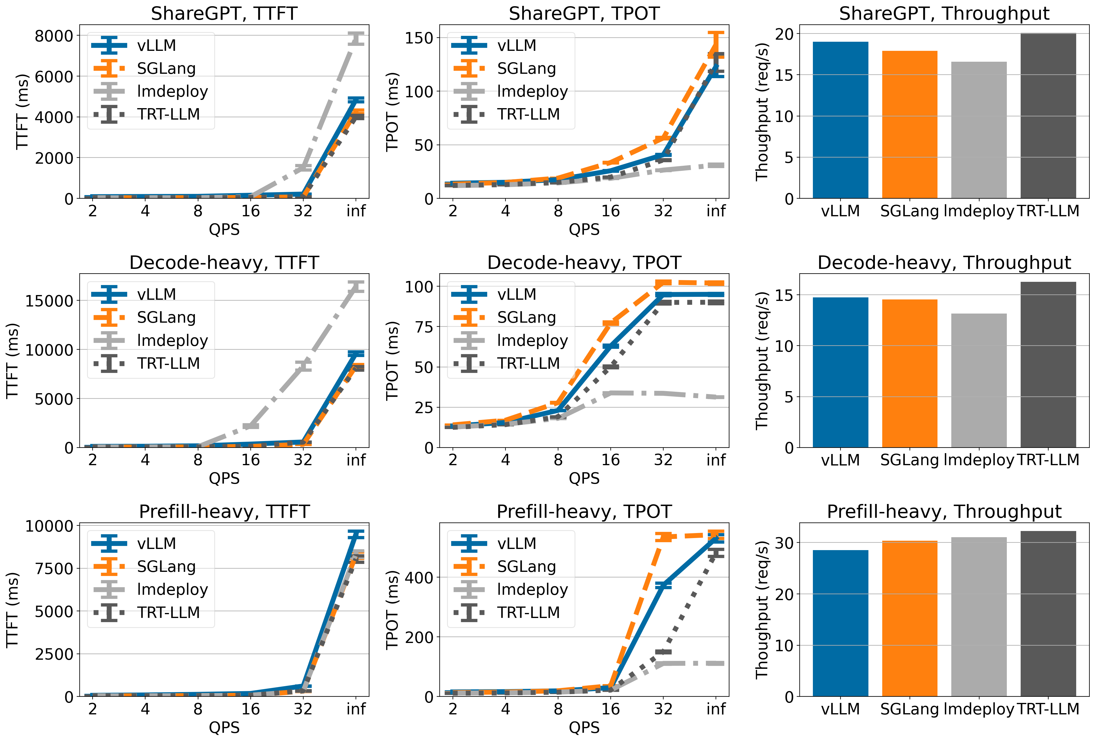 - Throughput is measured under QPS inf (meaning that all requests come at once).